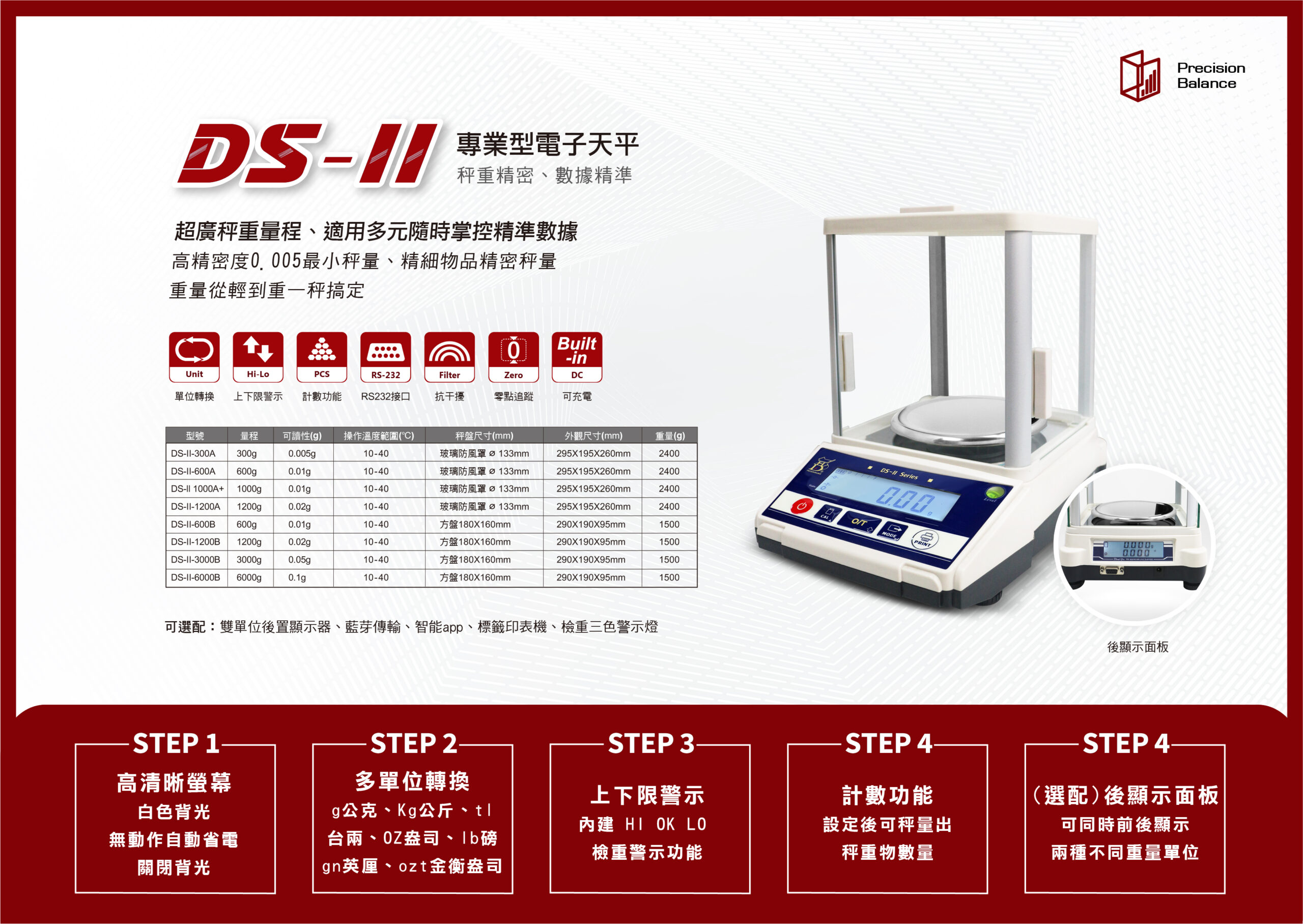 DS-II 專業型電子天平 (可選配後顯)