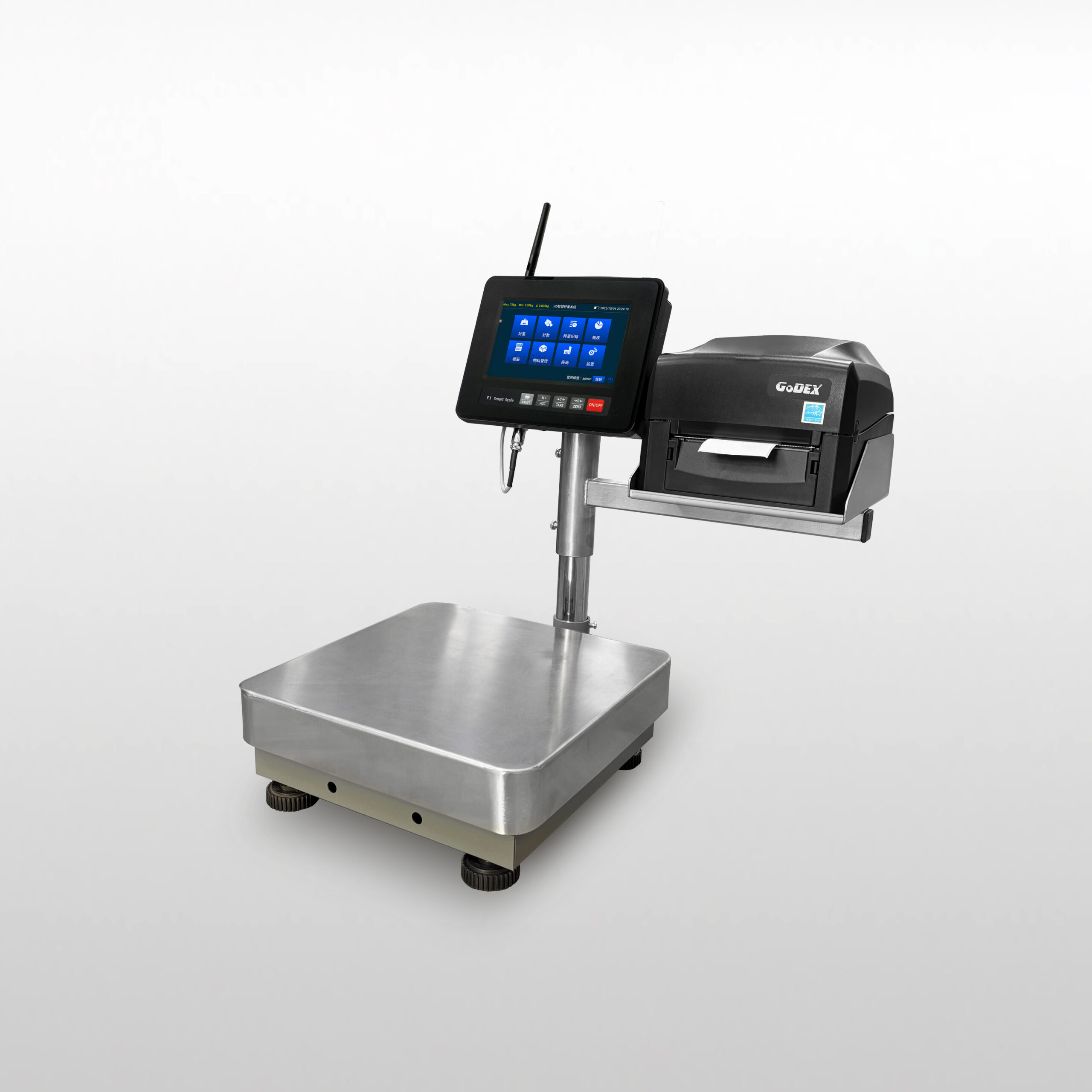 計重、計數、多種格式標籤設計、秤重列印,重量或數量上下限警示檢校功能、歷史資料、USB導出數據…等